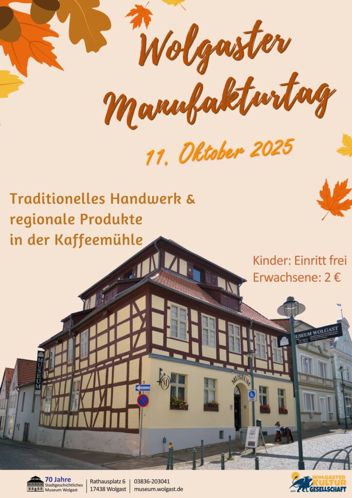 Am 11. Oktober 2025 präsentieren Profis aus der Region traditionelles Handwerk zum Anfassen, Mitmachen und Staunen in der Wolgaster Kaffeemühle.